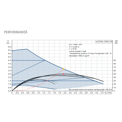 Pompa Grundfos Pompa Grundfos ALPHA3 15-60 130 este proiectată pentru sisteme de încălzire și apă caldă. Este o pompă de tip circulație. Pompa dispune de AUTOADAPT, care ajustează automat pompa la cerințele sistemului pentru confort optim și consum redus de energie, precum și punere în funcțiune simplă. Dispune de conectivitate la dispozitive inteligente prin intermediul aplicațiilor Grundfos.