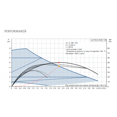Pompa Grundfos Pompa Grundfos ALPHA3 25-80 130 este proiectată pentru sisteme de încălzire și apă caldă. Este o pompă de tip circulație. Pompa dispune de AUTOADAPT, care ajustează automat pompa la cerințele sistemului pentru confort optim și consum redus de energie, precum și punere în funcțiune simplă. Dispune de conectivitate la dispozitive inteligente prin intermediul aplicațiilor Grundfos.